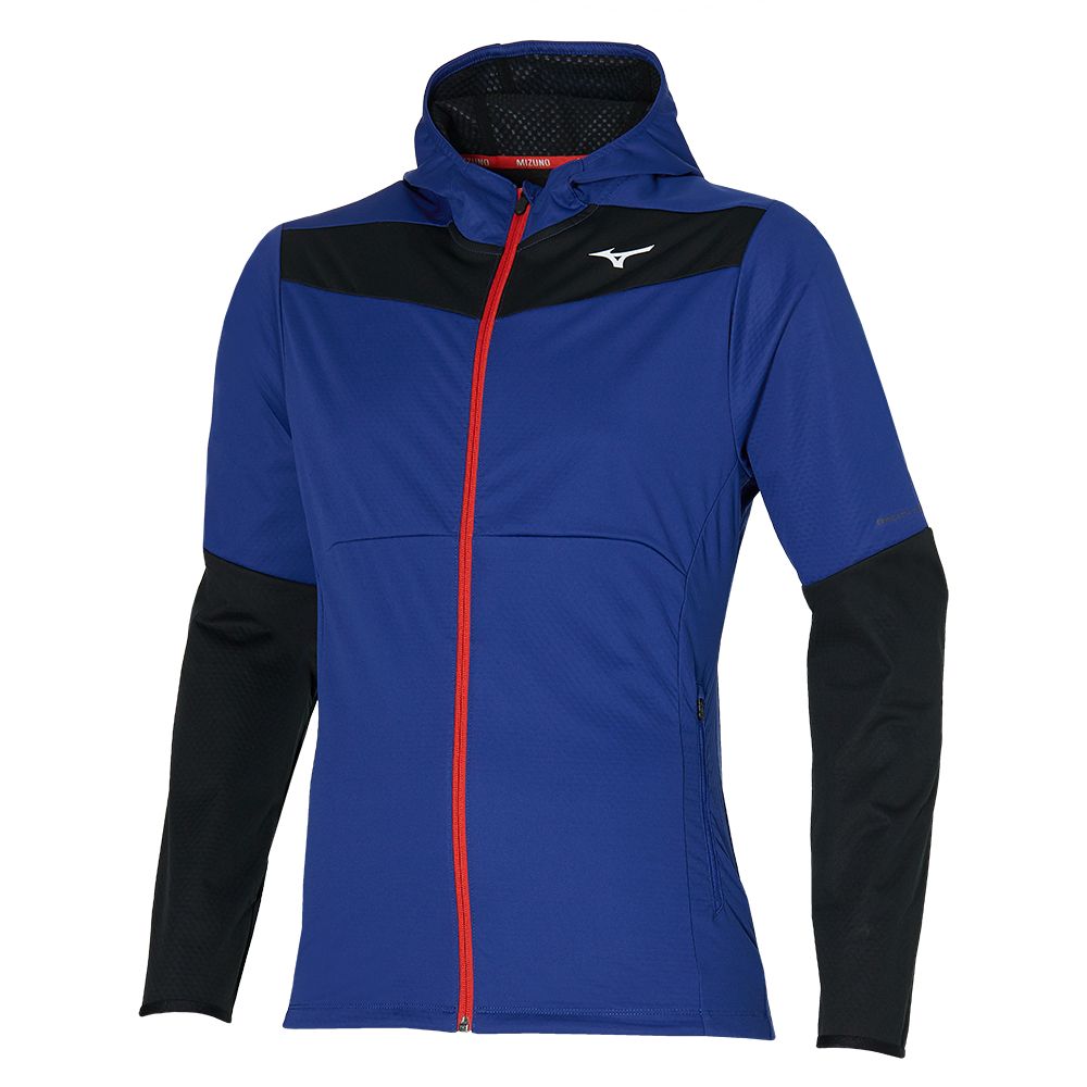 MIZUNO THERMAL CHARGE enhances muscle power for better performance.ImpermaLite Technology provides wind and water resistance.Two front zip pockets for secure storage.Hood keeps you covered from elements.Ventilation on the back for breathability.Binders at cuffs help you put on and take off the jacket.Reflective details for better visibility during night run.
