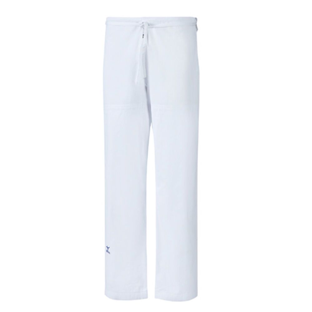 Label with blue Mizuno logo embroidered under the right knee
