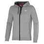 Cotton hooded sweat jacket with rib sleeve cuffs and waistband.Brushed fabric to enhance the comfort.Mizuno print on the left sleeve.Two side open pockets.